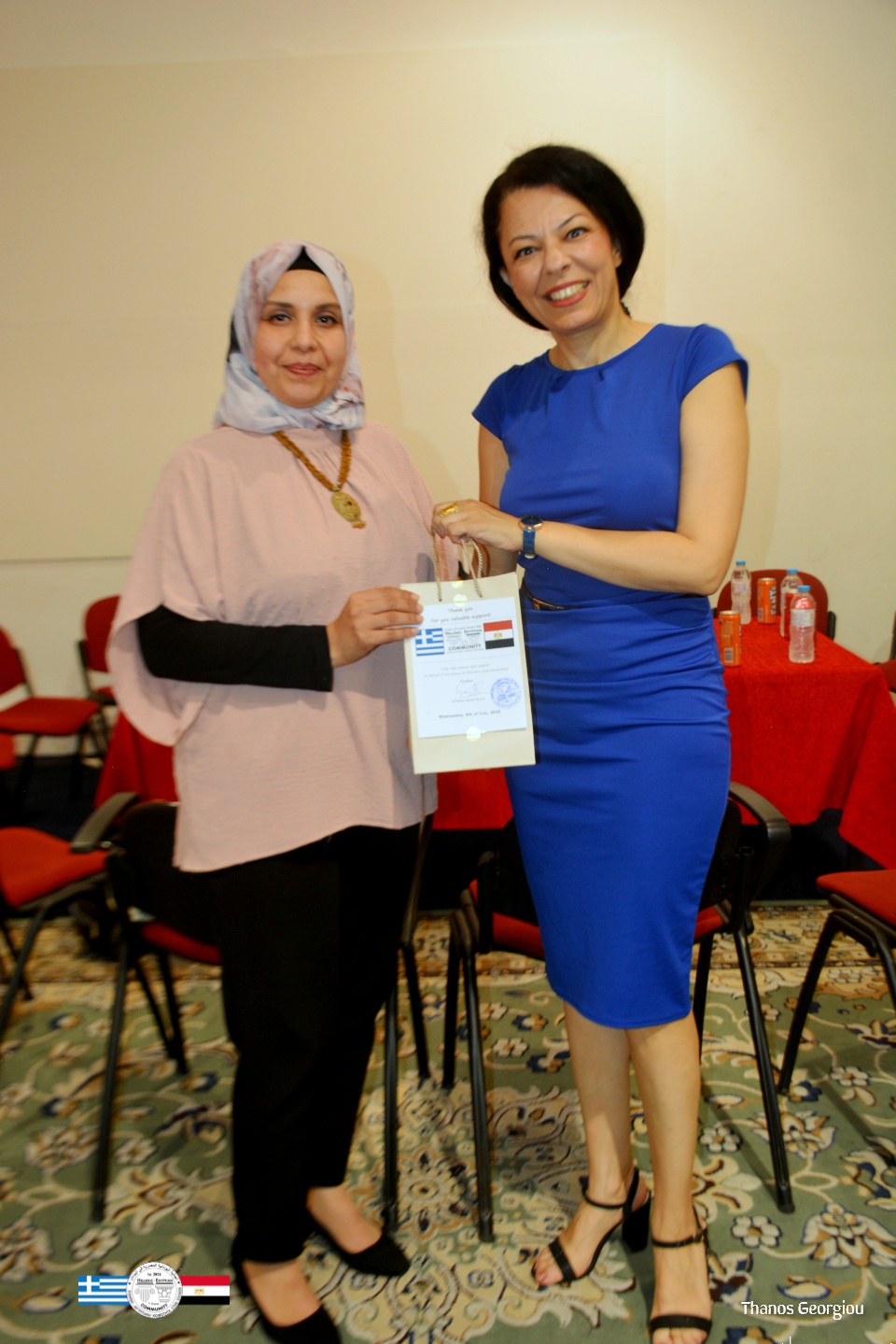 Σε ένδειξη εκτίμησης για τη θερμή φιλοξενία και τη σταθερή υποστήριξη της θεσμικής σύμπραξης, η Ελληνοαιγυπτιακή Κοινότητα στην Ελλάδα προσέφερε στo Αιγυπτιακό Μορφωτικό Κέντρο ένα συμβολικό αναμνηστικό δώρο. Η χειρονομία αυτή επισφράγισε την κοινή πρόθεση για ουσιαστική εμβάθυνση των δεσμών και για την περαιτέρω ενίσχυση της διαπολιτισμικής συνεργασίας.