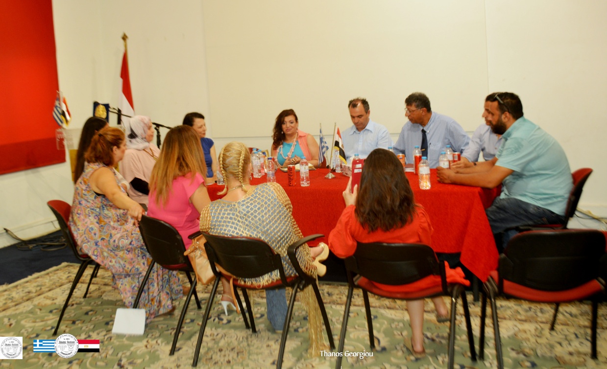 Κατόπιν πρόσκλησης της Δρ. Μαναάλ Άλι, τα μέλη της αποστολής της Ελληνοαιγυπτιακής Κοινότητας στην Ελλάδα παρουσίασαν θεματικές προτάσεις για μελλοντικές συνέργειες με το Μορφωτικό Κέντρο. Η παρουσίαση των μελών της αποστολής αποσκοπεί στην ανάδειξη του θεματικού έργου κάθε Επιτροπής της Κοινότητας και στην ενίσχυση της θεσμικής διασύνδεσης με τους αντίστοιχους τομείς δραστηριοτήτων του Αιγυπτιακού Μορφωτικού Κέντρου: