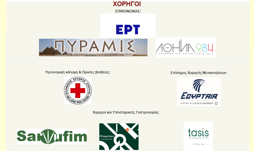 Χορηγοί Επικοινωνίας: ΕΡΤ, ΠΥΡΑΜΙΣ, Αθήνα 9,84.