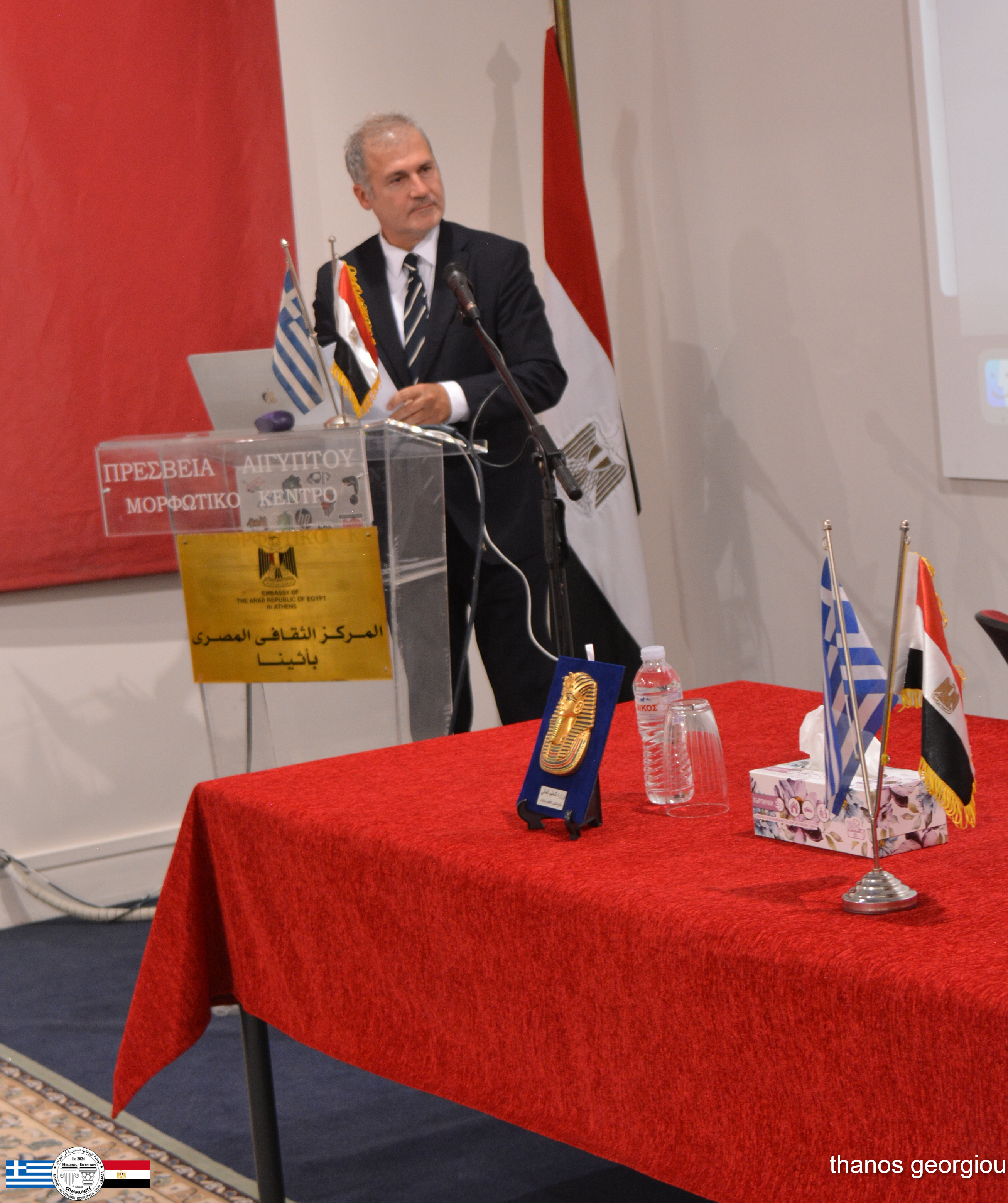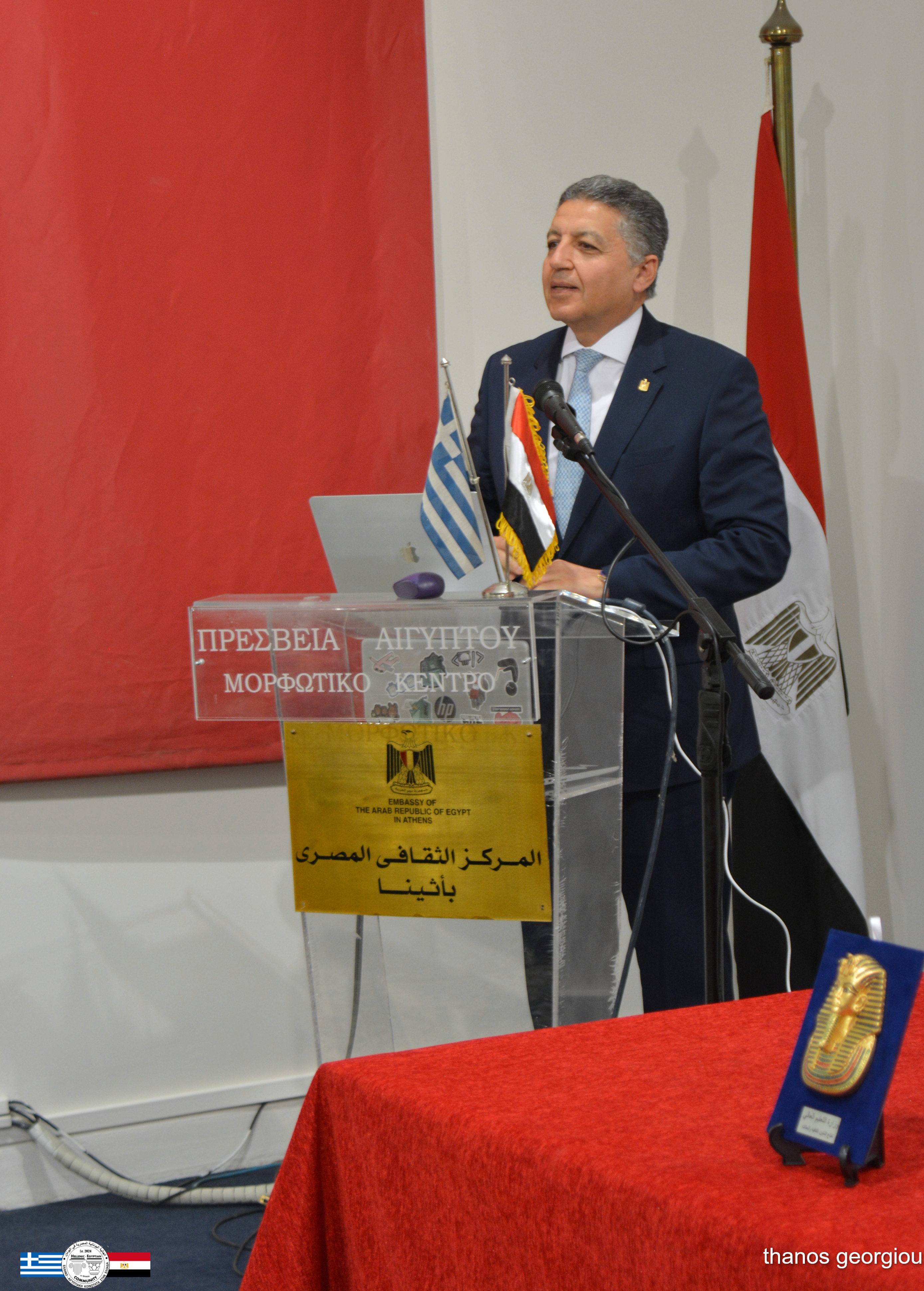 Στον επίσημο χαιρετισμό του, η Εξοχότητά του, Πρέσβης κ. Omar Amer Youssef, αναφέρθηκε στη στρατηγική σημασία του νέου Μεγάλου Αιγυπτιακού Μουσείου ως διεθνούς έργου πολιτιστικής προβολής της Αιγύπτου. Επισήμανε την ανάγκη περαιτέρω ενίσχυσης της θεσμικής συνεργασίας Ελλάδας–Αιγύπτου και εξέφρασε την εκτίμησή του προς τους φορείς που συμβάλλουν συστηματικά στην προώθηση της ελληνοαιγυπτιακής φιλίας.