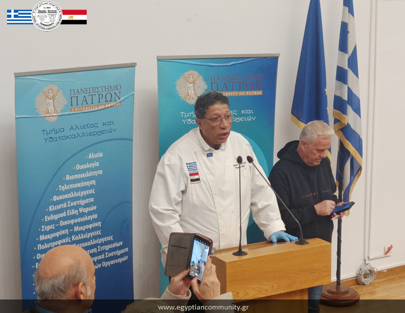 Η Ελληνοαιγυπτιακή Κοινότητα στην Ελλάδα, στο πλαίσιο της αποστολής της για την προώθηση θεσμικών συνεργασιών μεταξύ Ελλάδας και Αιγύπτου, είχε την τιμή να συμβάλει θεσμικά και να συμμετάσχει ενεργά στις τριήμερες εκδηλώσεις της 7ης Ημέρας Υδατοκαλλιέργειας, που διοργάνωσε το Τμήμα Αλιείας και Υδατοκαλλιεργειών του Πανεπιστημίου Πατρών.